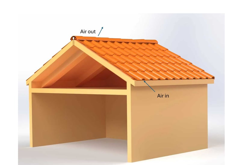 EcoRoc's tile design incorporates dedicated ventilation features to improve airflow and reduce heat buildup. The space beneath each tile is intentionally engineered to create continuous airflow channels, allowing hot air to escape more efficiently. In addition, we include a specially designed structural accessory that promotes vertical and horizontal air circulation across the roof surface. This system can reduce underlying roof temperatures by up to 10°C, helping to improve indoor comfort, extend roof lifespan, and increase overall energy efficiency.