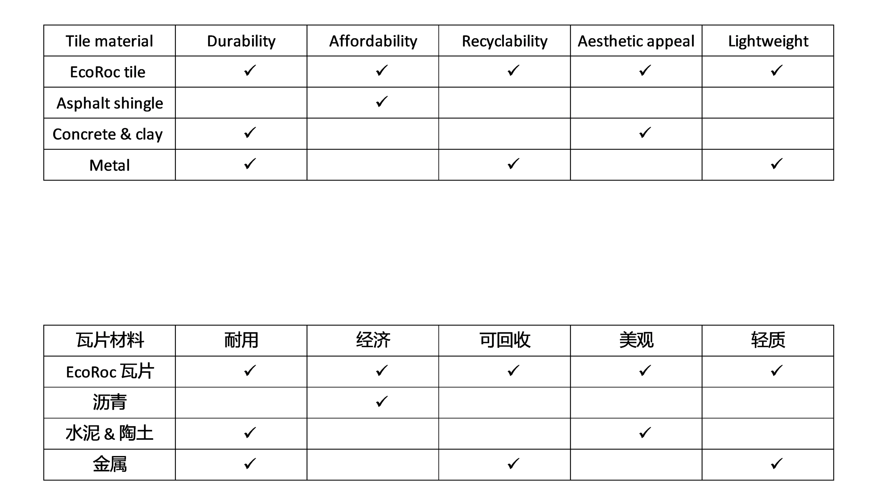 EcoRoc 提供三大不同的瓦片系列——皇冠 (C)、浪潮 (M) 和 王室 (R),分别满足不同的设计偏好。